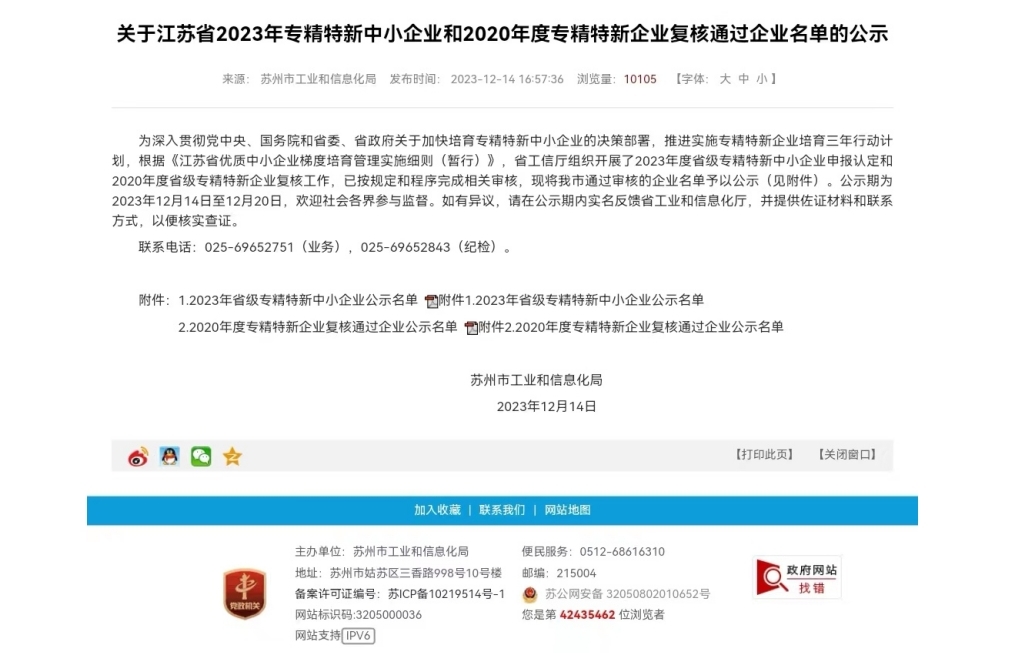恭喜蘇州博睿通過江蘇省專精特新企業(yè)認(rèn)定