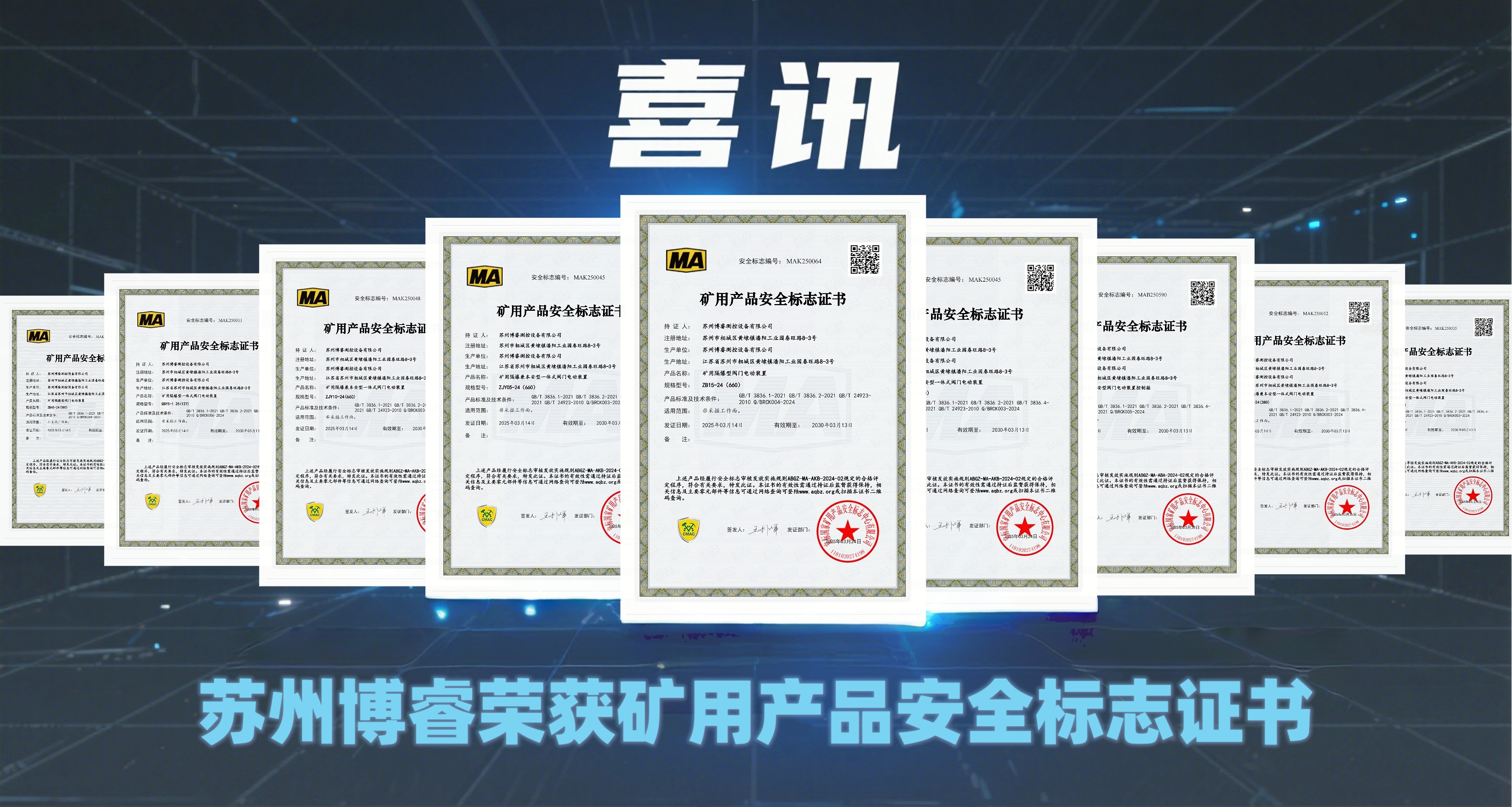 近日,蘇州博睿測控設(shè)備有限公司通過國家礦用產(chǎn)品安全中心的嚴(yán)格審核,成功取得礦用隔爆型閥門電動(dòng)裝置安全標(biāo)志證書(MA認(rèn)證)。
