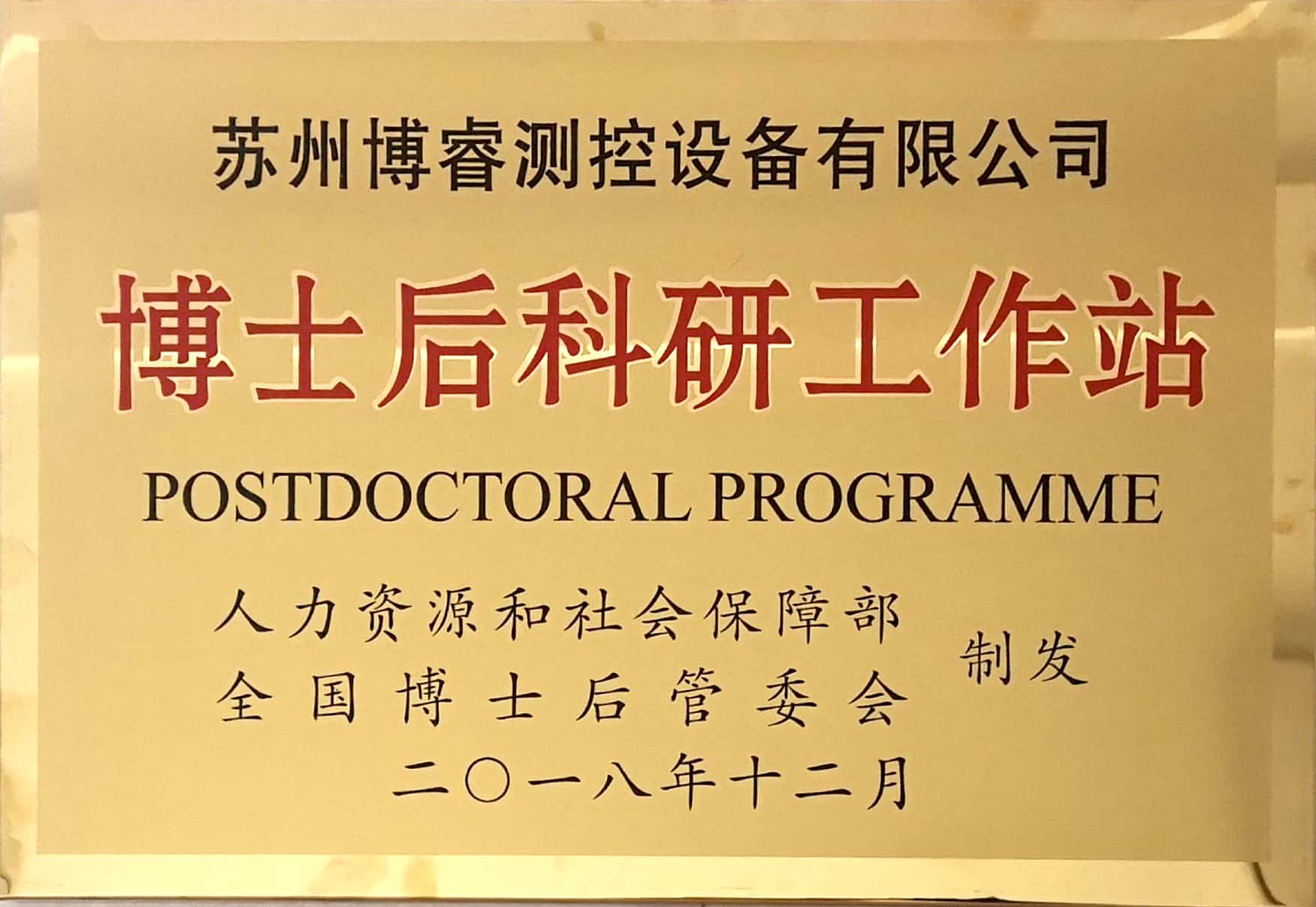 經(jīng)國家人力資源和社會保障部及全國博士后管理委員會審核批準(zhǔn),蘇州博睿測控設(shè)備有限公司正式獲批設(shè)立國家博士后科研工作站。